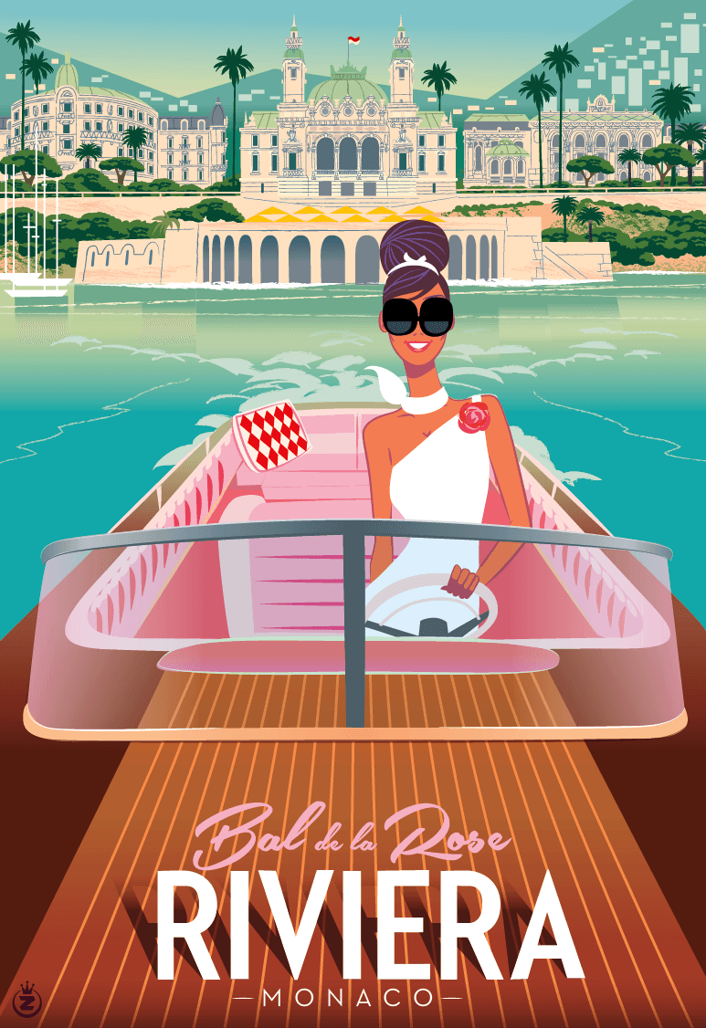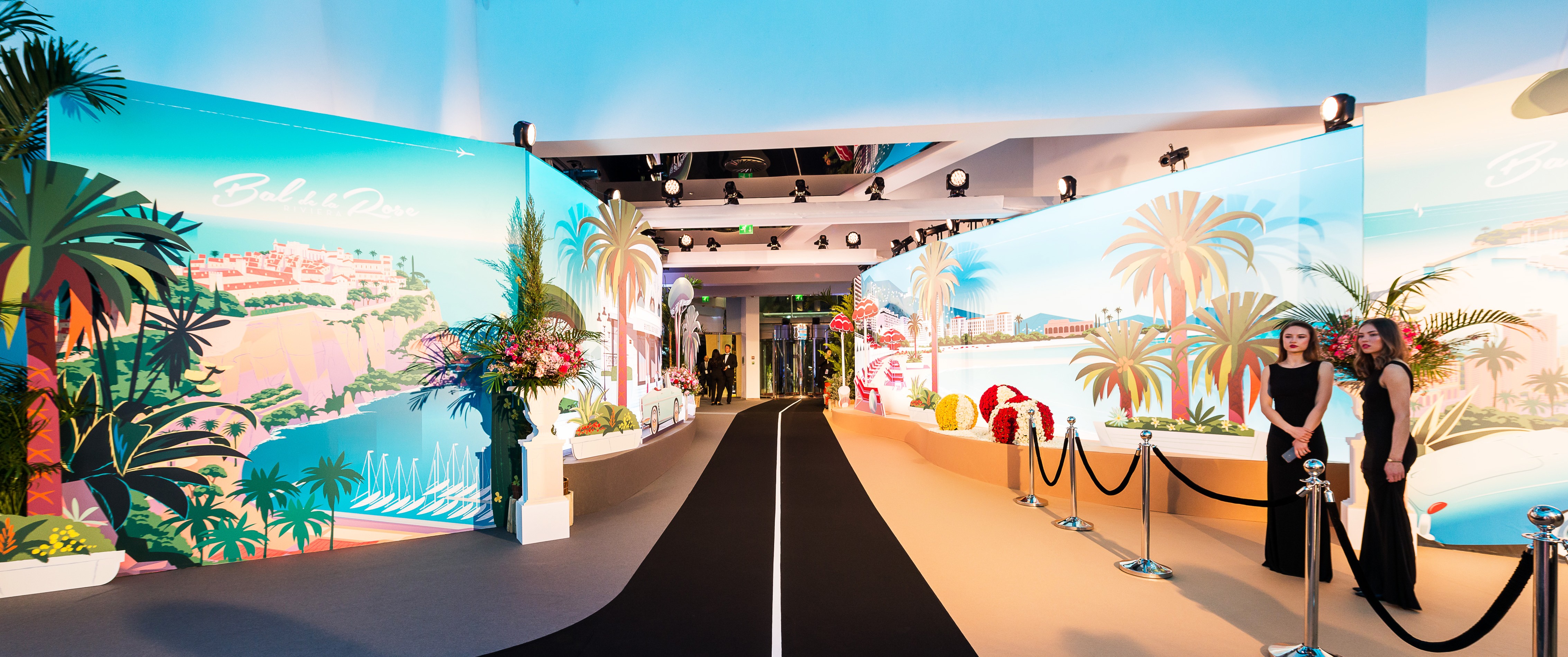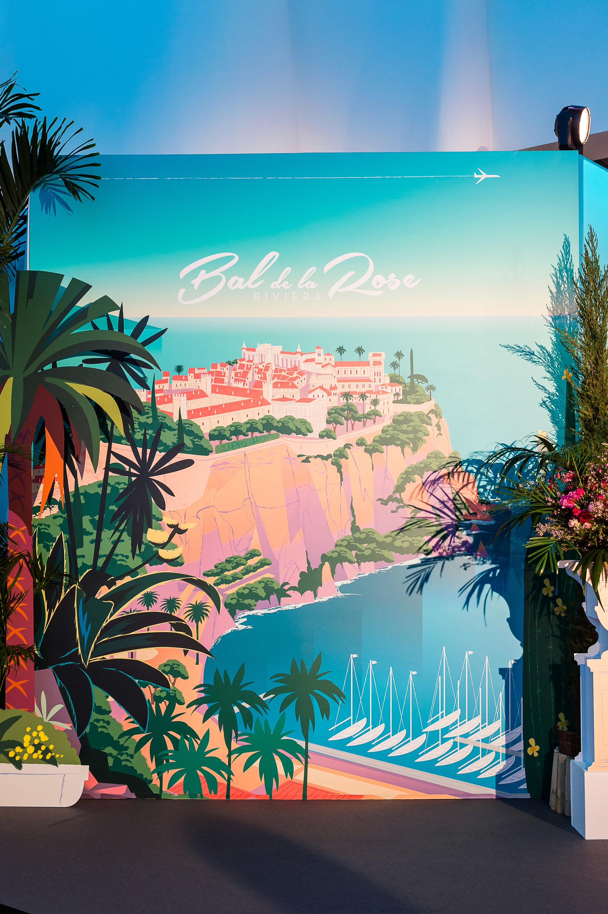 Pour magnifier ce thème, l’identité visuelle fut confiée à Monsieur Z, dont l’esthétique illustrée — glamour, rétro-futuriste et résolument cinématographique — insufflait à la soirée un esprit "French Riviera" sophistiqué et joyeux. L’objectif était de créer un décor immersif, mêlant élégance princière, fantaisie balnéaire et modernité, afin d’offrir aux invités une expérience à la fois festive, immersive et iconique, fidèle à l’esprit du Bal de la Rose et à son rôle caritatif au profit de la Fondation Princesse Grace.