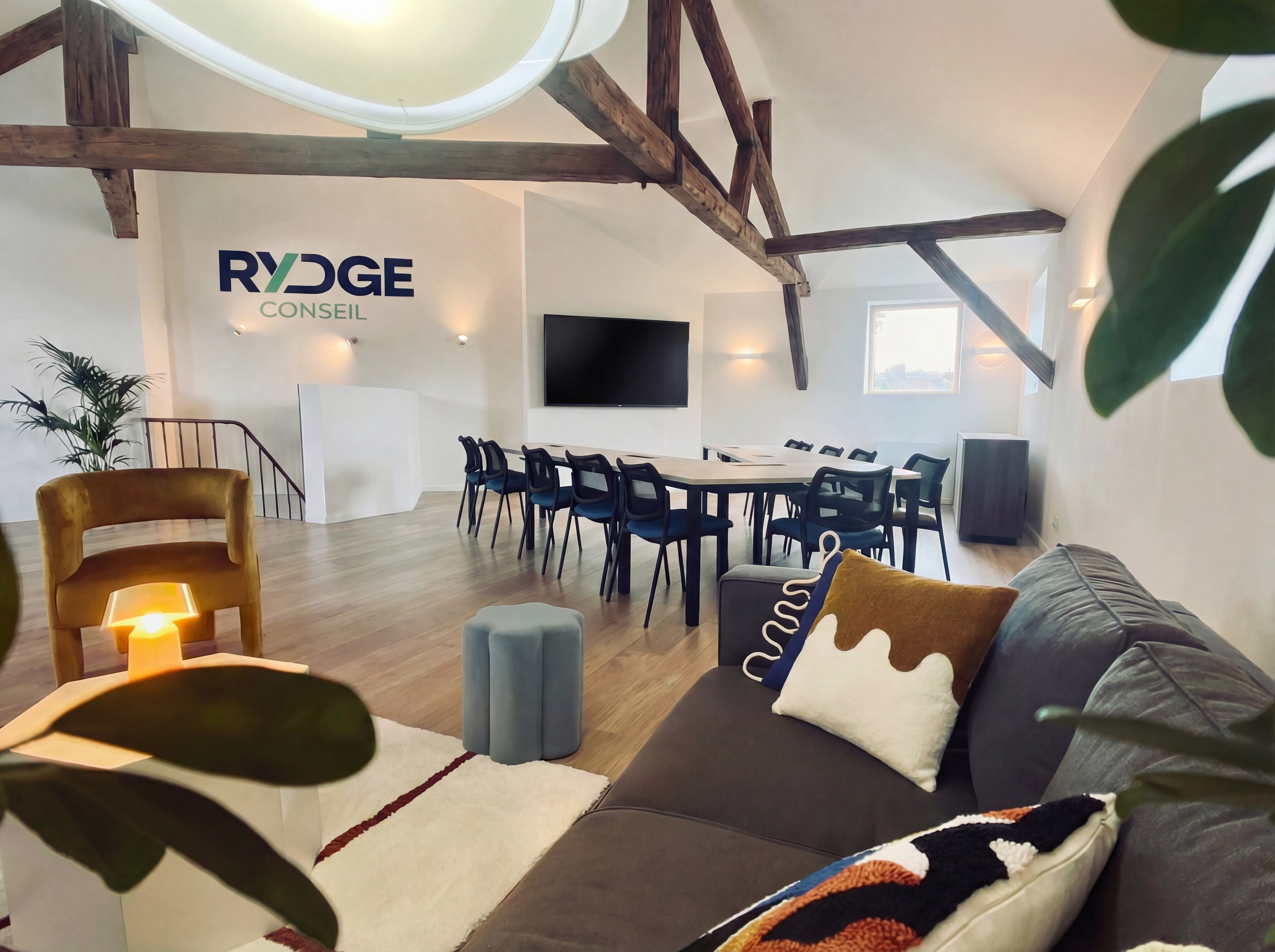 Le cabinet RYDGE Conseil s’est implanté à Cambrai au sein d’un immeuble entièrement repensé pour accueillir ses équipes et ses clients dans un environnement contemporain, structurant et raffiné. L’aménagement met l’accent sur la qualité d’usage, la fluidité des circulations et une atmosphère professionnelle chaleureuse, pensée pour favoriser l’échange, la réflexion stratégique et la confidentialité. L’ensemble du bâtiment a par ailleurs été requalifié en ERP de catégorie 5, afin d’offrir une accessibilité totale aux visiteurs, y compris aux personnes en situation de handicap.